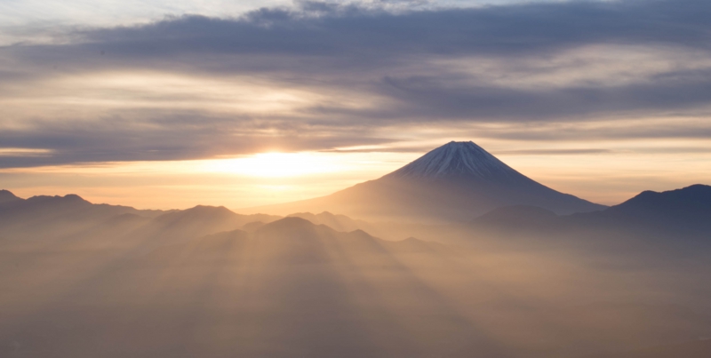 撮影場所 山梨県櫛形山 撮影日時 平成25年12月6日 AM6:58 気温-3℃ 解 説 櫛形山からの日出の瞬間、神々しい光芒がさした。